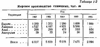 В табл. 1-1 приведены данные о мировой добыче боксита с 1947 г., а в табл. 1-2 показано мировое производство глинозема.