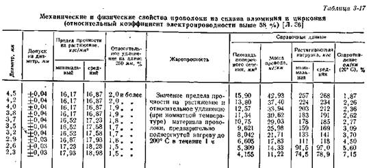 Сплав алюминия с цирконием нашел широкое применение за рубежом в качестве жилы в кабельных, изделиях. В Японли , например, для воздушных линий, электропередач применяют голый многопроволочный кабель,; в котором центральный пучок стальных жил обмотан жилами из жаропрочного алюминиевого сплава марки TACSR. Преимущества проволок из алюминиевых сплавов наиболее полно проявляются в собирательных шинах на электрических подстанциях, так как здесь увеличение потерь на нагрев и величина провисания не имеют большого значения. Использование этой проволоки на городских электроподстанциях позволяет ограничиться простым одножильным проводом, в то время как при использовании обычной твердой алюминиевой проволоки необходим двухжильный провод.