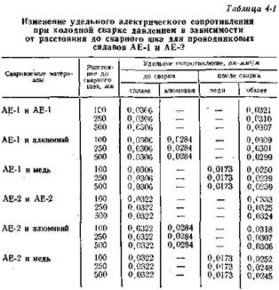 В табл. 4-1 показаны результаты измерения удельного электрического сопротивления этих сплавов после холодной сварки в зависимости от расстояния до сварного шва. Указанные данные свидетельствуют о том, что по мере удаления от сварного шва величина удельного электрического сопротивления уменьшается. В целом значение удельного электрического сопротивления при сварке сплавов с медью приблизительно представляет собой