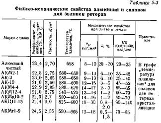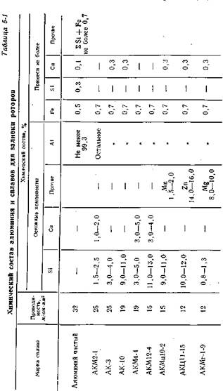 В табл. 5-1 приведены химические составы алюминия и алюминиевых сплавов, предназначенных для заливки роторов асинхронных электродвигателей с 1-го по 9-й габариты.