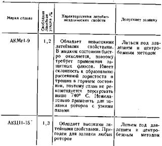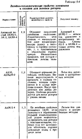 В табл. 5-4 даны качественные характеристики алюминия и сплавов для заливки роторов по литейно-технологическим свойствам, а также приведены наиболее приемлемые методы заливки.