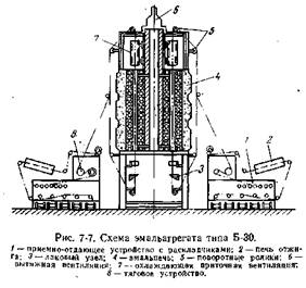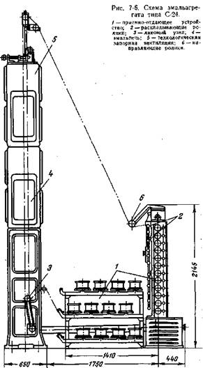 Эмалирование осуществляется на вертикальных эмалировочных печах эпоксидным лаком, который наносится способом погружения. Излишек лака удаляется фетром.