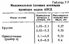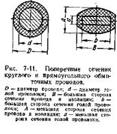Максимальная толщина изоляции проводов круглого сечения (D—d ) и прямоугольного сечения (В—b ) должна соответствовать данным табл. 7-5.