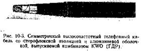 Один из типов высокочастотных симметричных кабелей связи со стирофлексной изоляцией (ГДР) показан на рис. 10-3. Кабель имеет небольшой коэффициент защитного действия (ниже 0,1). Алюминиевая бесшовная оболочка этих.