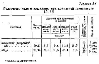 В табл. 2-5 показаны данные измерения ползучести для меди и алюминия.