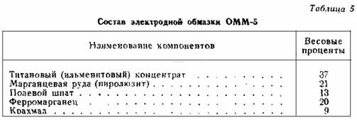 по ГОСТ 2246-51. Состав обмазки ОММ-5 приведён в табл. 5.