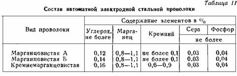 Для сварки под флюсом можно пользоваться стандартной электродной стальной сварочной проволокой по ГОСТ 2246-51 (см. табл. 3). Наиболее употребительны марки проволоки Св1 и Св1А. Кроме того, в Советском Союзе изготовлялась специальная автоматная электродная проволока, состав которой по ГОСТ 178-48 дан в табл. 11.
