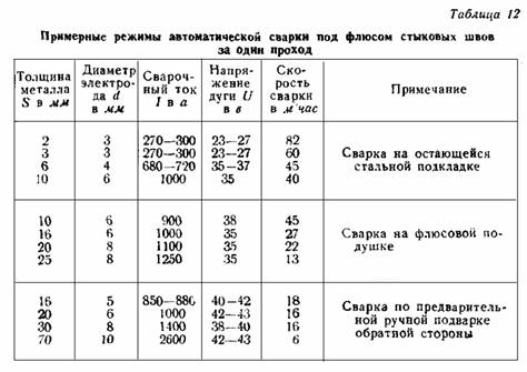 Примерные режимы автоматической сварки стыковых швов для малоуглеродистой стали даны в табл. 12.