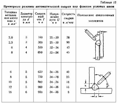 Примерные режимы автоматической сварки угловых швов даны в табл. 23.