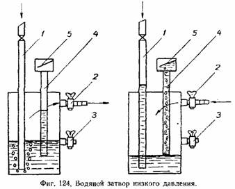 Простейший водяной затвор низкого давления схематически изображён на фиг. 124.
