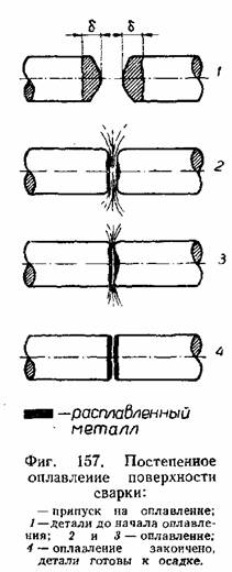 В процессе оплавления сжигаются все выступы и неровности на поверхности сварки, выравнивается сечение, поэтому поверхность стыка под сварку не требует какой-либо особой подготовки и детали могут идти на сварку из-под ножниц, пилы, пресса и т. п. В процессе оплавления сгорают и удаляются вместе с расплавленным металлом загрязнения его поверхности, поэтому при сварке оплавлением поверхность сварного стыка не требует особой очистки.