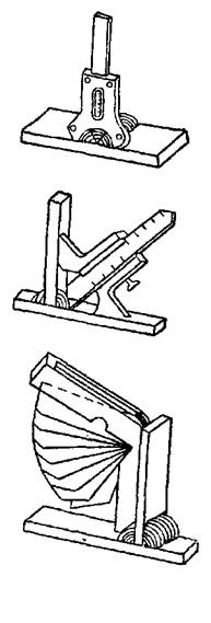 Этим способом на поверхности сварных швов выявляются трещины, подрезы, раковины, поры, не заделанные кратеры, неравномерное распределение наплавленного металла, слишком неровная грубочешуйчатая его поверхность и т. д. Осмотр производится невооружённым глазом, места, сомнительные по трещинам, просматриваются в лупу. Осмотр шва производится по возможности сразу после сварки и, во всяком случае, до окраски изделия. Одновременно с осмотром обычно производится и обмер сечений швов шаблонами и калибрами, вроде показанных на фиг. 195. Так же производится обмер сваренного изделия для проверки установленных размеров, допусков и деформаций.
