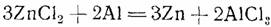 На зачищенные поверхности места пайки насыпают порошок безводного хлористого цинка и подогревают детали. При подогреве порошок плавится с выделением густого едкого дыма, освобождая расплавленный цинк. Происходит обменная реакция; алюминий соединяется с хлором и улетучивается, а освобождающийся цинк сплавляется с алюминием и дифундирует на некоторую глубину в основной металл. Процесс происходит по уравнению