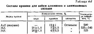 Приведенные в табл. 4-5 составы припоев дают прочные паяные швы, устойчивые против коррозии в атмосферных условиях. Более удобным в технологическом отношении является припой 34А, так как имеет наиболее низкую температуру плавления.
