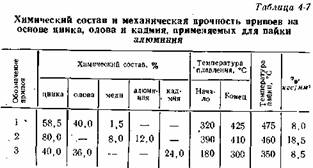 В табл. 4-7 приведены составы припоев на основе олова, цинка и кадмия.