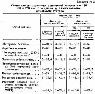 Как и в нашей стране, расход рабочего времени на двигатель с алюминиевой обмоткой больше, чем на двигатель с медной обмоткой. Большая затрата рабочего времени при изготовлении двигателей с алюминиевыми обмотками не приводит к возрастанию себестоимости благодаря низкой стоимости алюминия в ГДР. Иногда себестоимость двигателей с алюминиевой обмоткой незначительно ниже себестоимости двигателей с медной обмоткой.