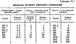 Нажимные винты зажимов следует затягивать с определенным моментом затяжки. В ЧССР приняты согласно существующему стандарту величины моментов затяжки, приведенные в табл. .15-1.