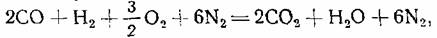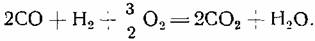 что приведённое выше уравнение не отражает полностью процесса, протекающего в первой стадии горения, например, при окислении углерода в СО неизбежно сгорит и некоторая часть водорода, образуя при этом пары воды.