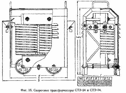 Сварочные трансформаторы изготовляются обычно однофазными, сухими, с естественным воздушным охлаждением. Примером трансформатора с отдельной дроссельной катушкой могут служить трансформаторы типа СТЭ, выпускаемые нашей промышленностью.