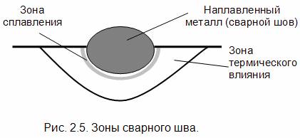 Сварной шов образуется за счет расплавления металла электрода и частично основного металла (рис. 2. 5.). В зоне сплавления кристаллизуются зерна, принадлежащие как основному, так и присадочному металлу. В зоне термического влияния из-за быстрого нагрева и охлаждения металла происходят структурные изменения металла.