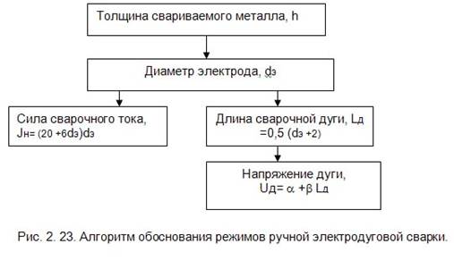 Расчет режимов ручной электродуговой сварки проводится в соответствии с алгоритмом (рис. 2.23).