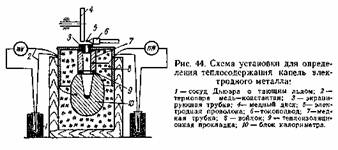 Теплосодержание электродного металла измерялось калориметром (рис. 44) при сварке порошковой проволокой с рутил-органическим сердечником,