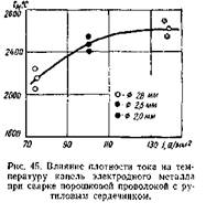 Экспериментальные данные о влиянии плотности тока на температуру капель иллюстрируются рис. 45. Температура капель растет при увеличении плотности тока.